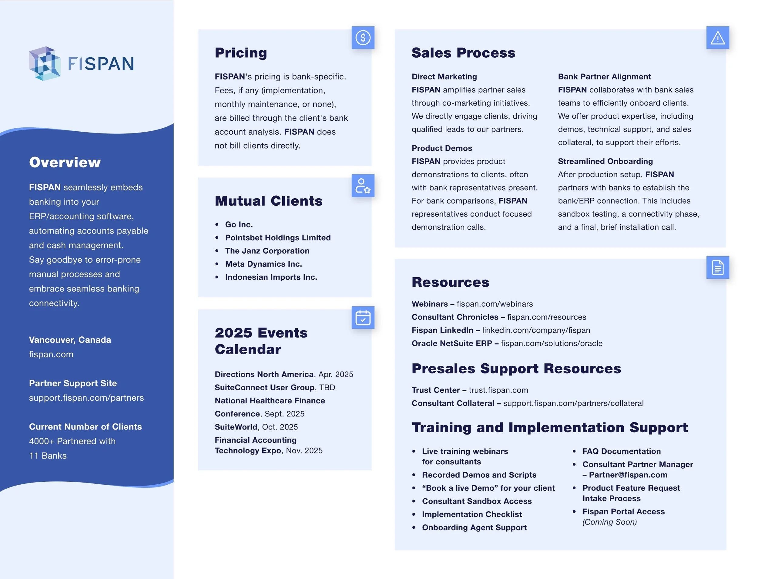 FISPAN is a Vancouver-based fintech leader that embeds commercial banking services directly into ERP and accounting software like Oracle NetSuite and Microsoft Dynamics. By bridging the gap between financial institutions and business systems, FISPAN eliminates manual data entry and "swivel-chair" accounting. Their platform empowers finance teams to manage payables and reconciliation within a single, unified environment, streamlining complex workflows for major global banks and their corporate clients.