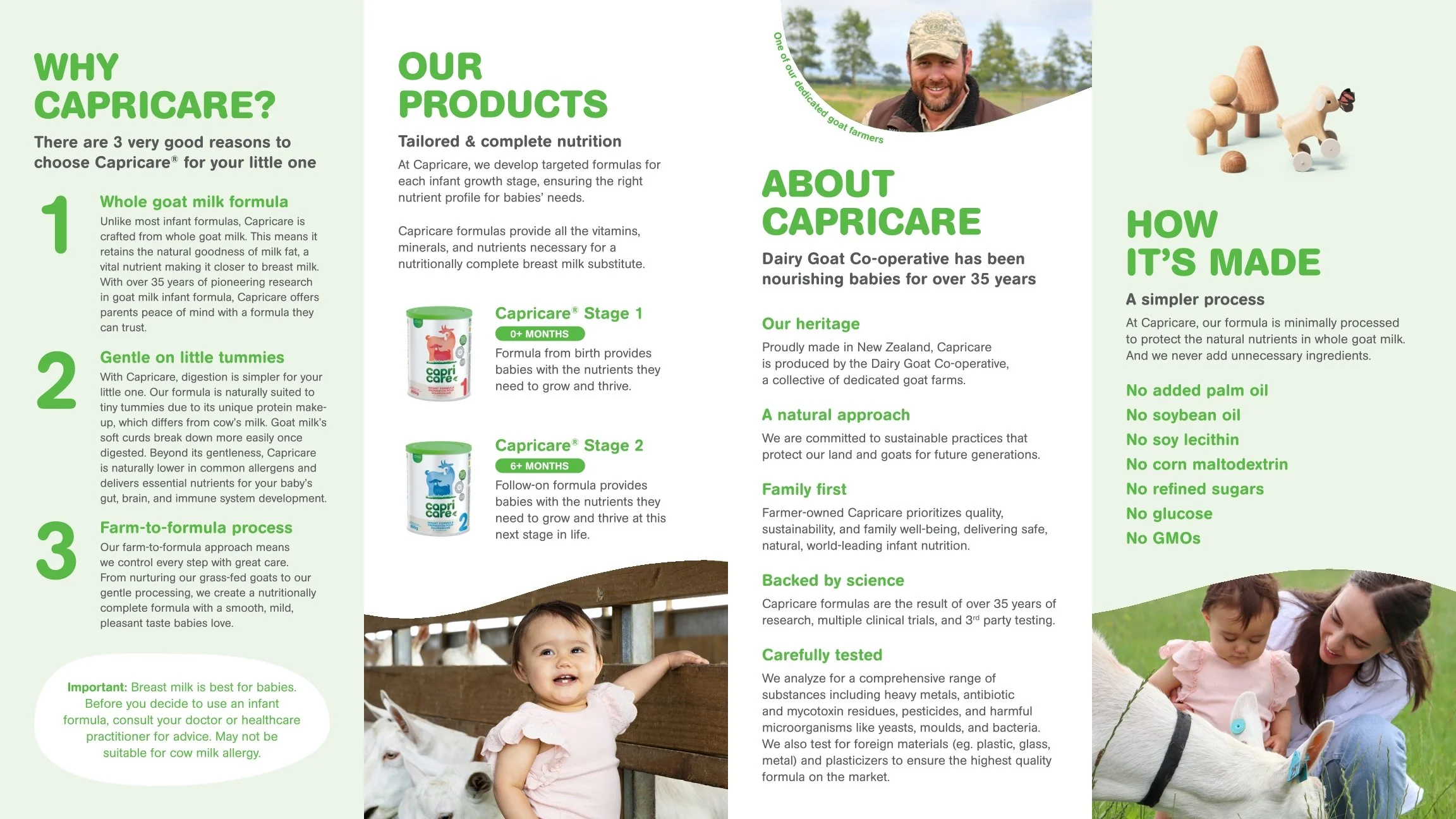 Capricare is a global leader in infant nutrition, specializing in premium formulas made from whole goat milk. Produced by the Dairy Goat Co-operative in New Zealand, the brand leverages over 30 years of clinical research to offer a gentle, minimally processed alternative to traditional cow milk formulas. By preserving natural A2 proteins and fats, Capricare provides a highly digestible, nutrient-rich solution rooted in sustainable farming and scientific excellence.