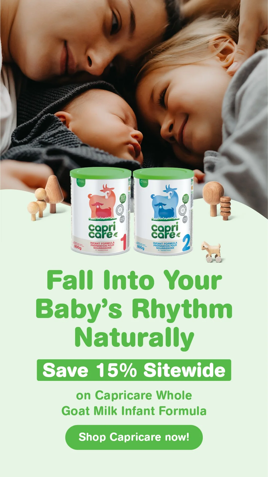 Following the 2025 launch of the Capricare D2C website, I helped execute a series of cross-platform campaigns across email, social media, Meta ads, and web banners. To keep the creative fresh and engaging, I utilized a mix of stock photography, in-house assets, custom illustrations, and AI-generated imagery. This variety allowed me to build diverse layouts while maintaining the brand's signature fun and family-centered aesthetic. By highlighting both infants and parents, the visuals captured the cozy, relatable moments of parenthood, ensuring the campaign felt approachable and warm across every touchpoint.